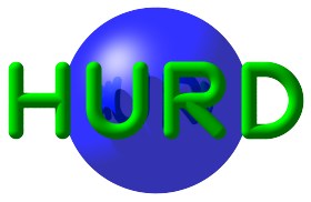 A large and very handsome logo, in black and white. ``HURD'' is spelled out in calligraphic lettering, with a graph structure to the left bearing four vertices.